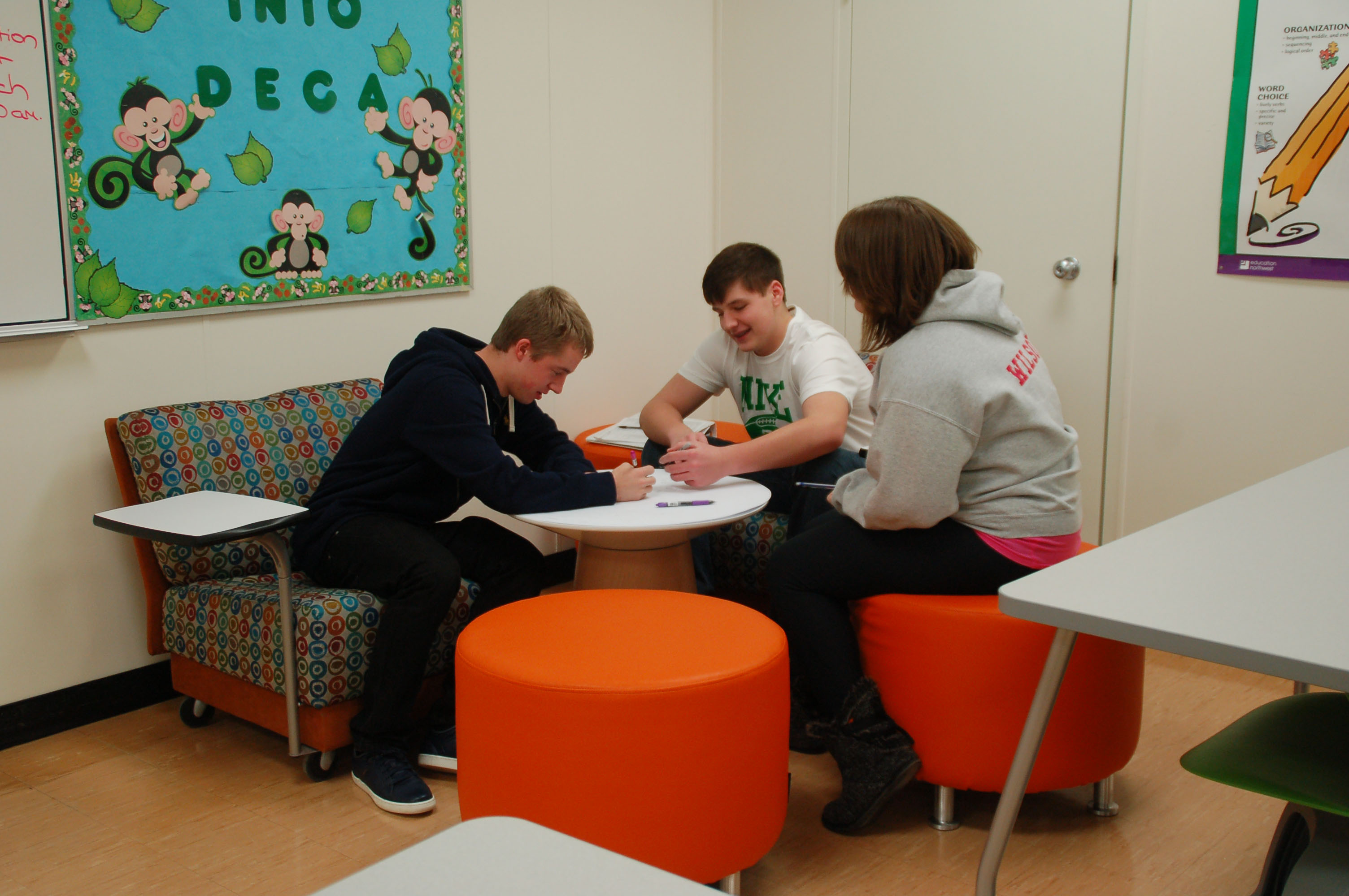 The motivation behind the new furnishing came from Deboer’s observations from over the years that the traditional classroom furniture at DHS didn’t work well with the format of her classes.