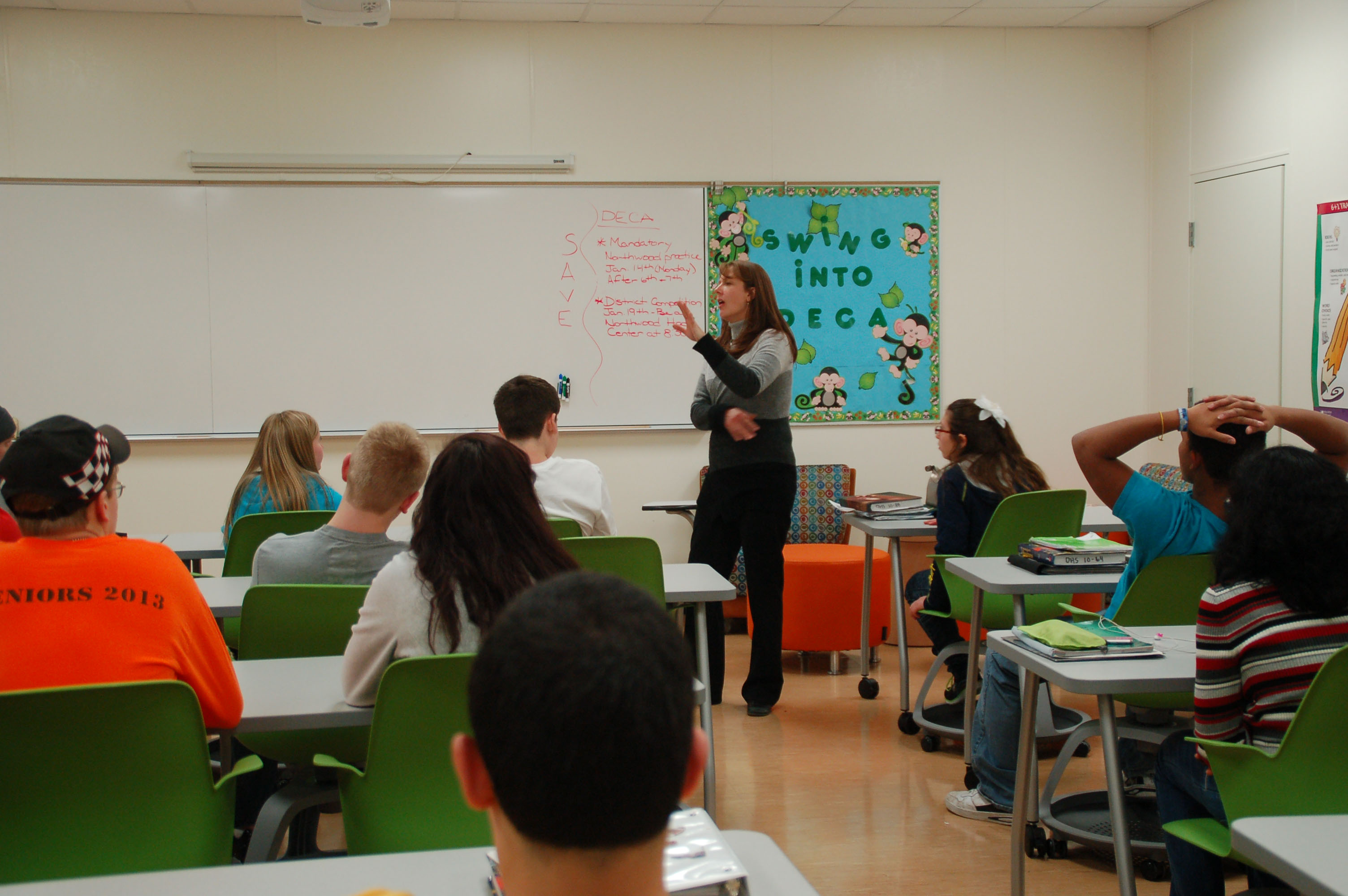 DHS business teacher, Melissa Deboer, had a recent change to her classroom, unlike any other in the school. At the end of the second semester of the 2011-2012 school year, a drawing for $10,000 toward classroom furniture revealed Deboer’s name. With this money, and profits that the Charger Shoppe earned over the years, she was able to fund this change.