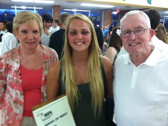Amanda Bishop shares the spotlight with her fellow class of 2013 peers on senior awards night which took place on Wednesday, May 1. Bishop received the Kiwanis Forensics Award as well as Honorable Mention for Feature Page/Spread for her work on Update. Grandparents Pam and Pete Bishop shared their support of Amanda’s honors.