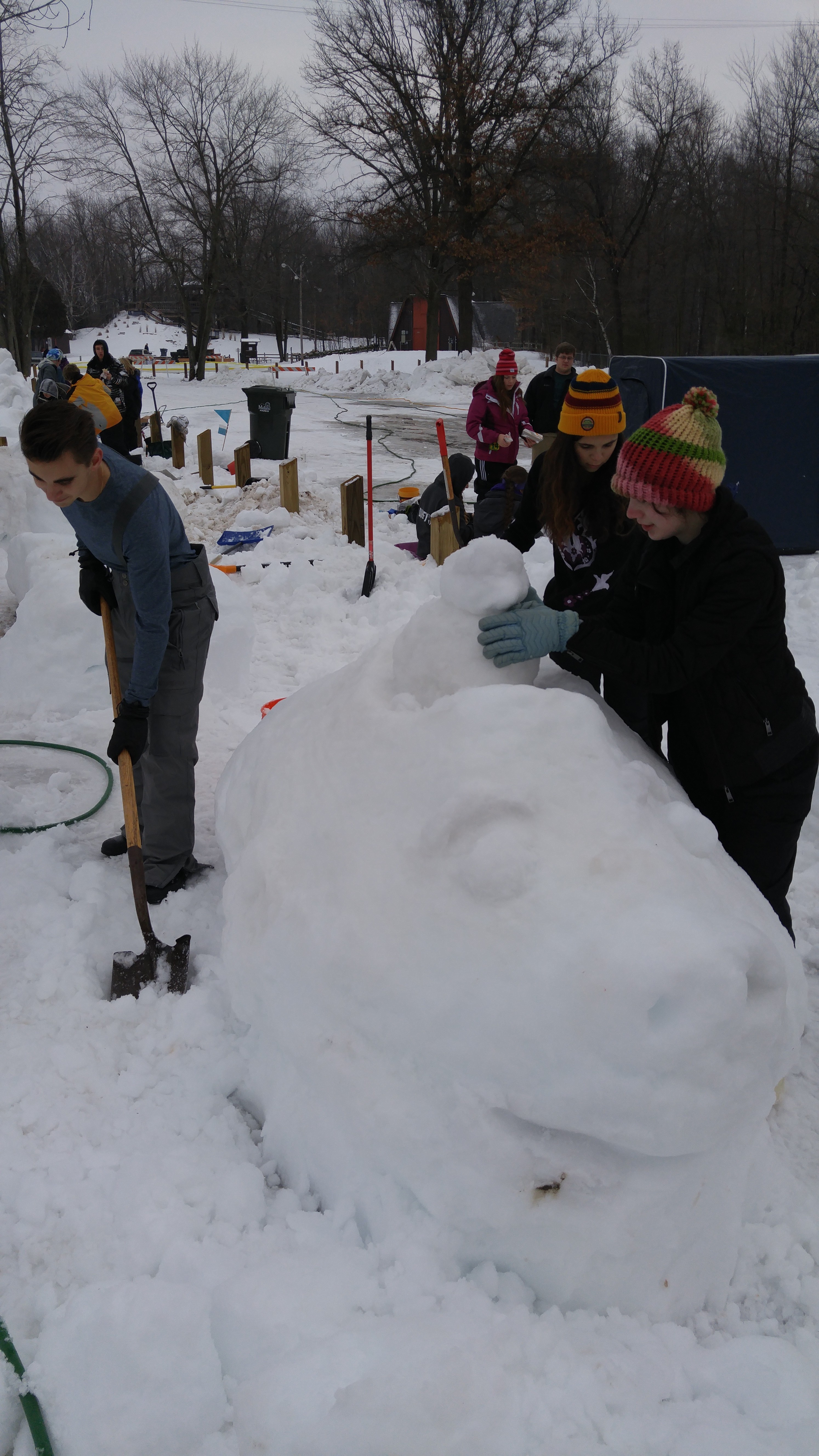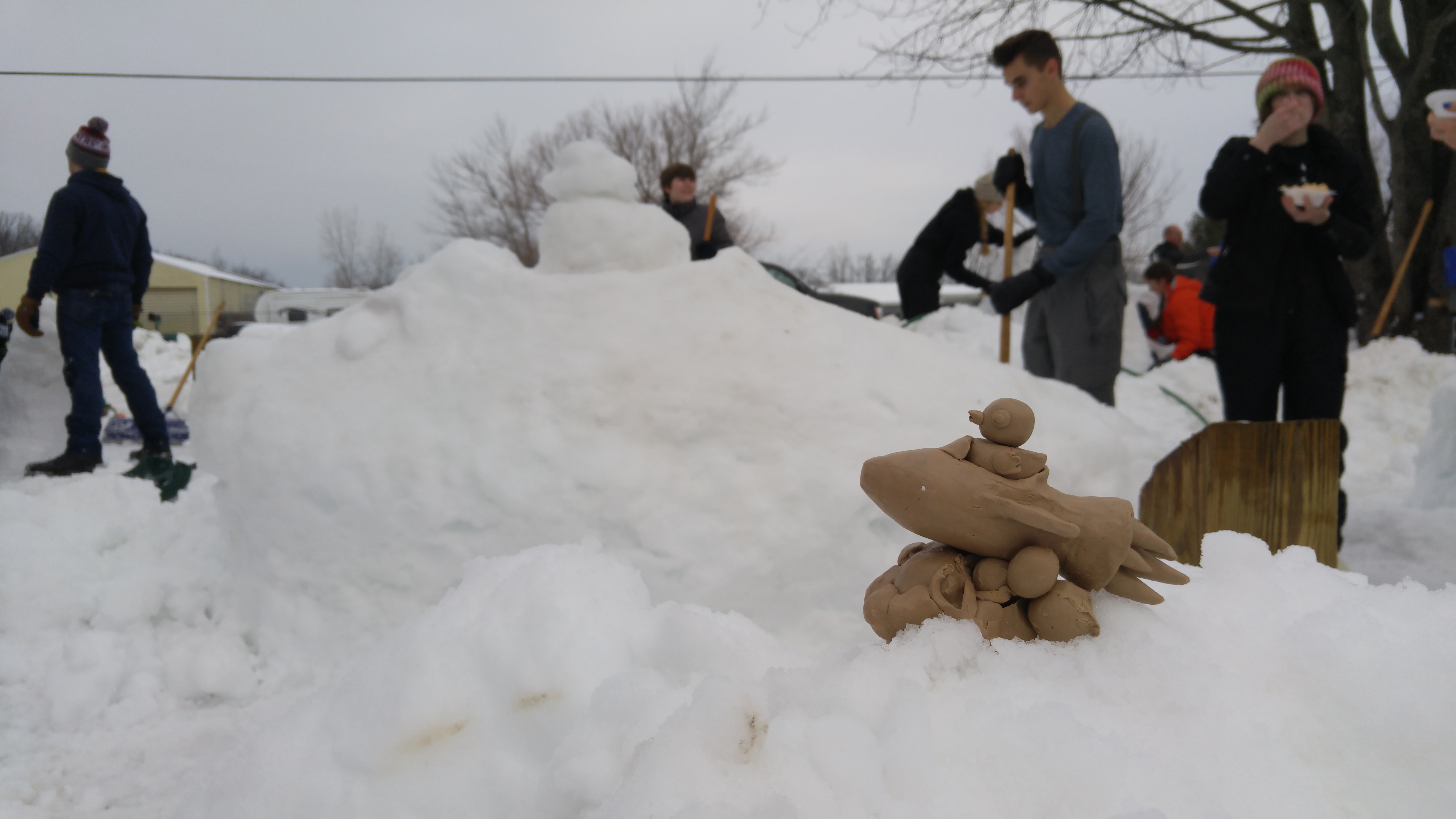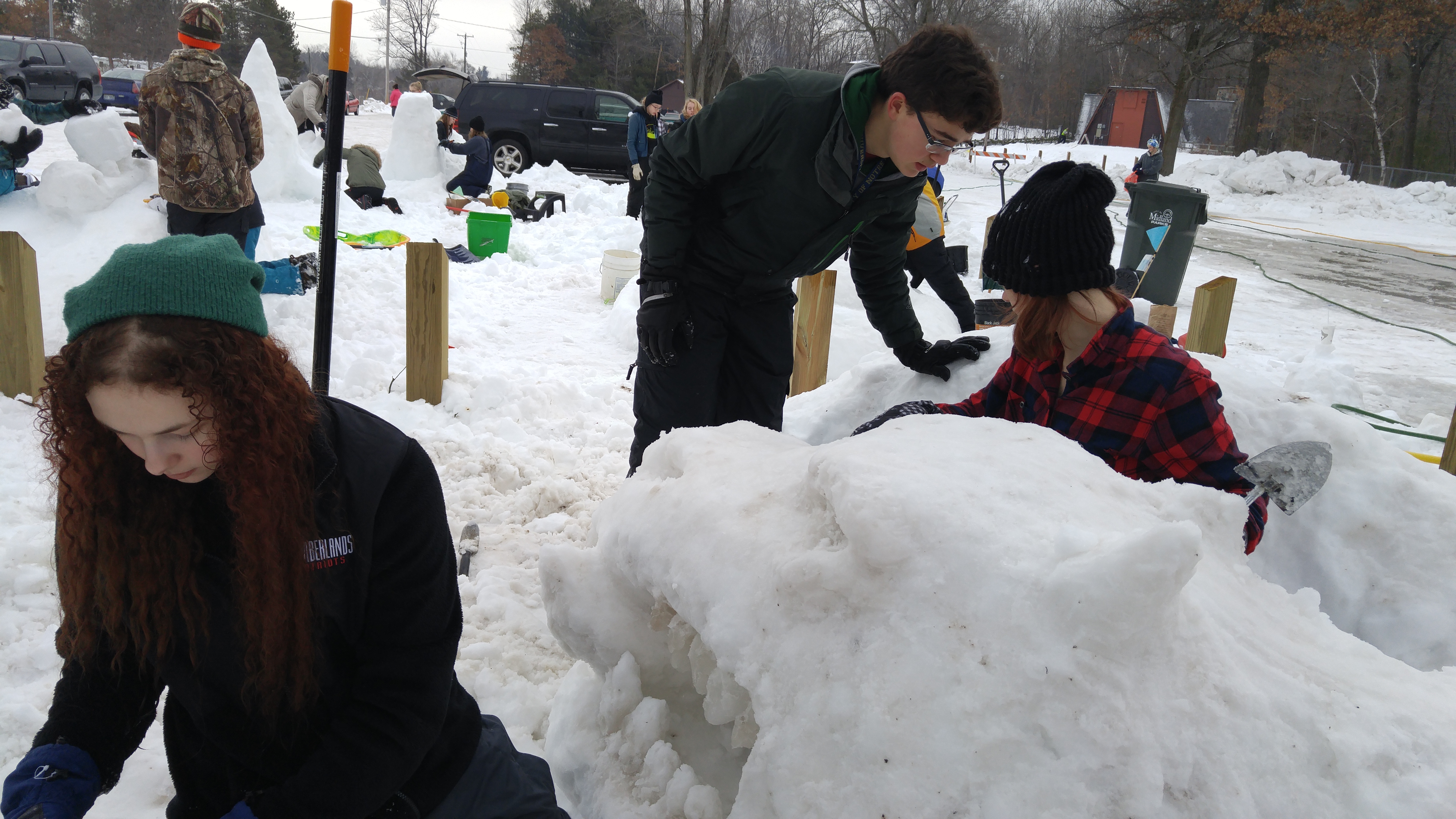 The experience wasn’t all work though. The competitors enjoyed the fresh air and had ample opportunity for fun and games while at work. From sledding to impromptu snowball fights, students worked hard but also found fun in snow sculpting.