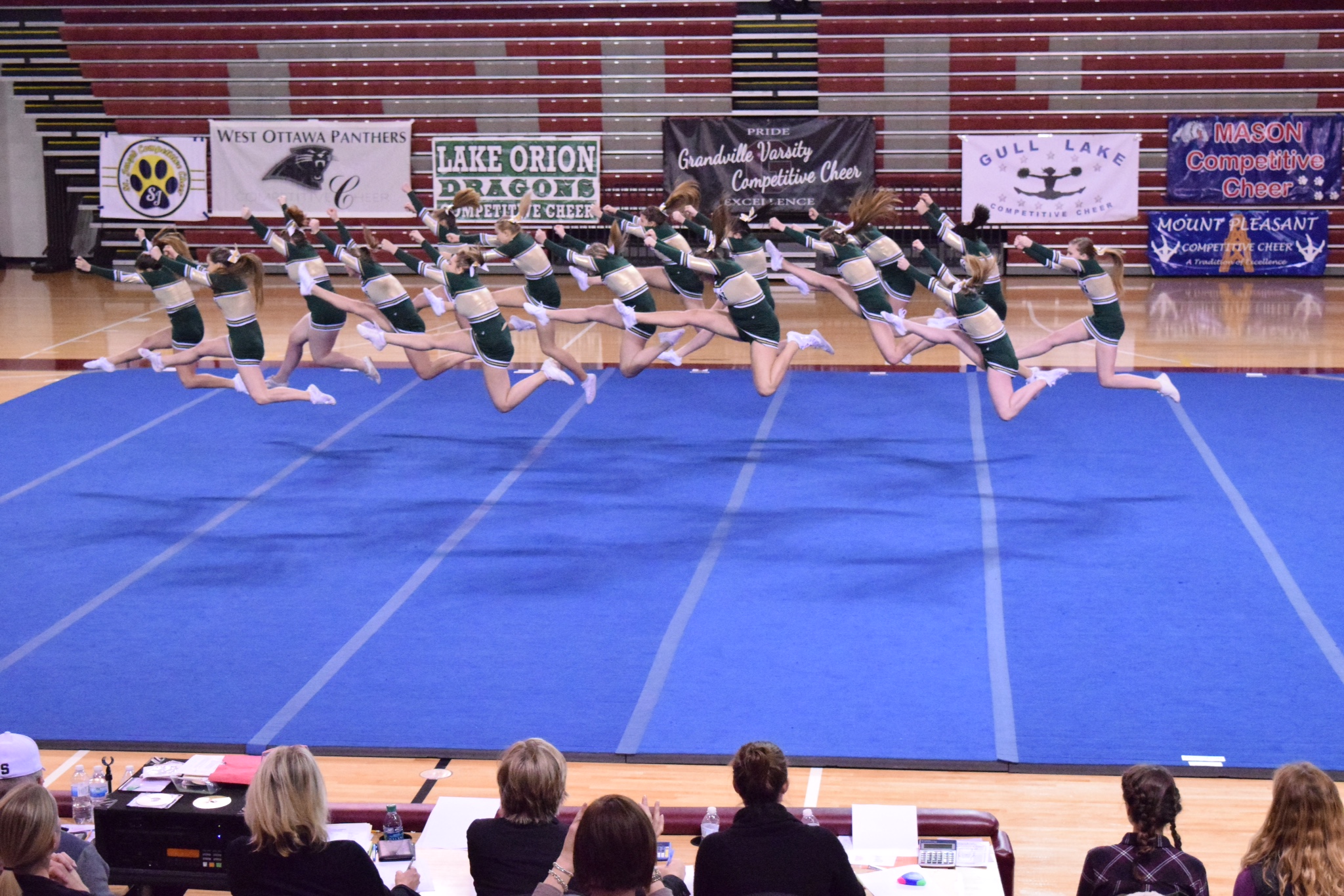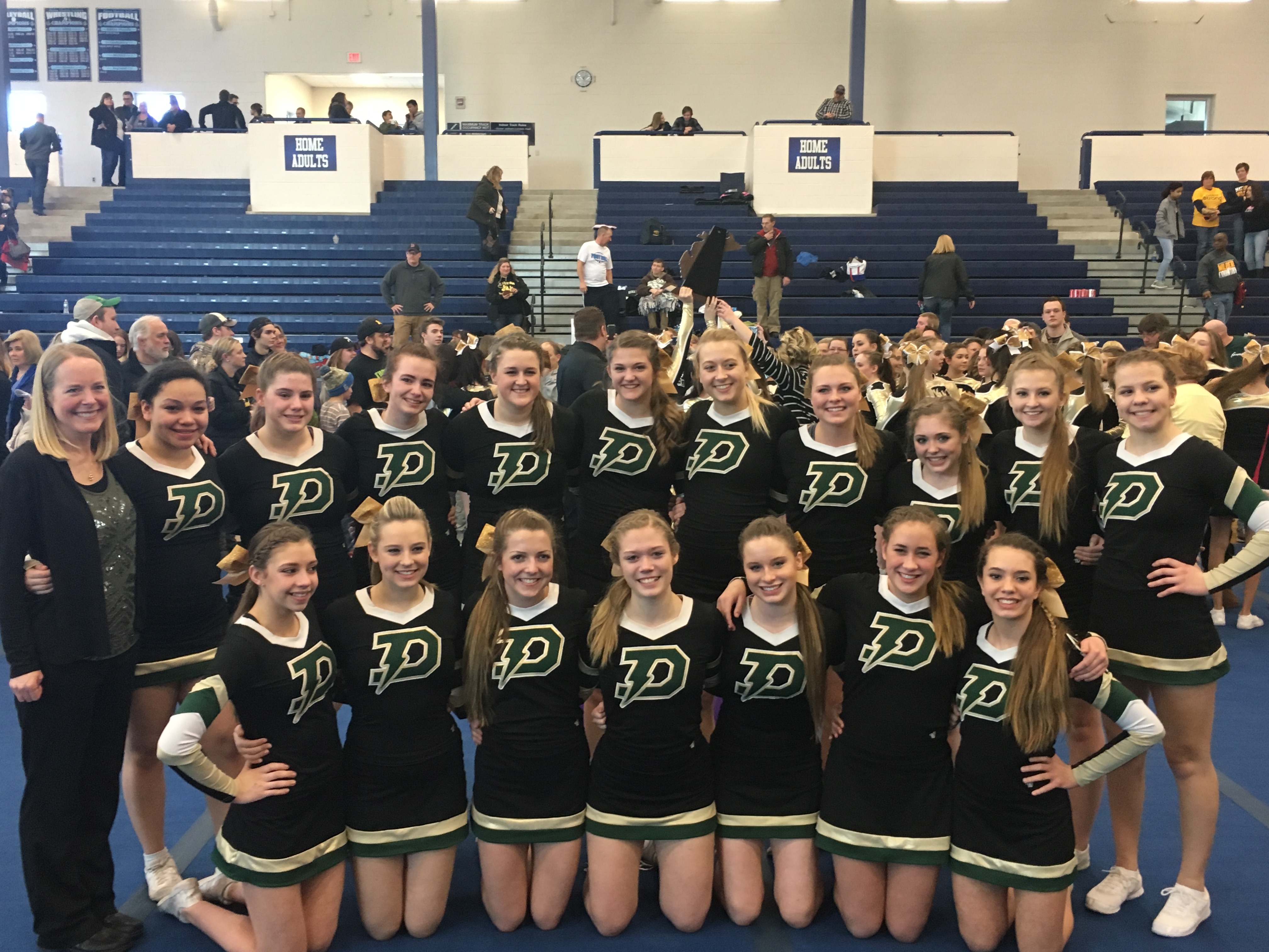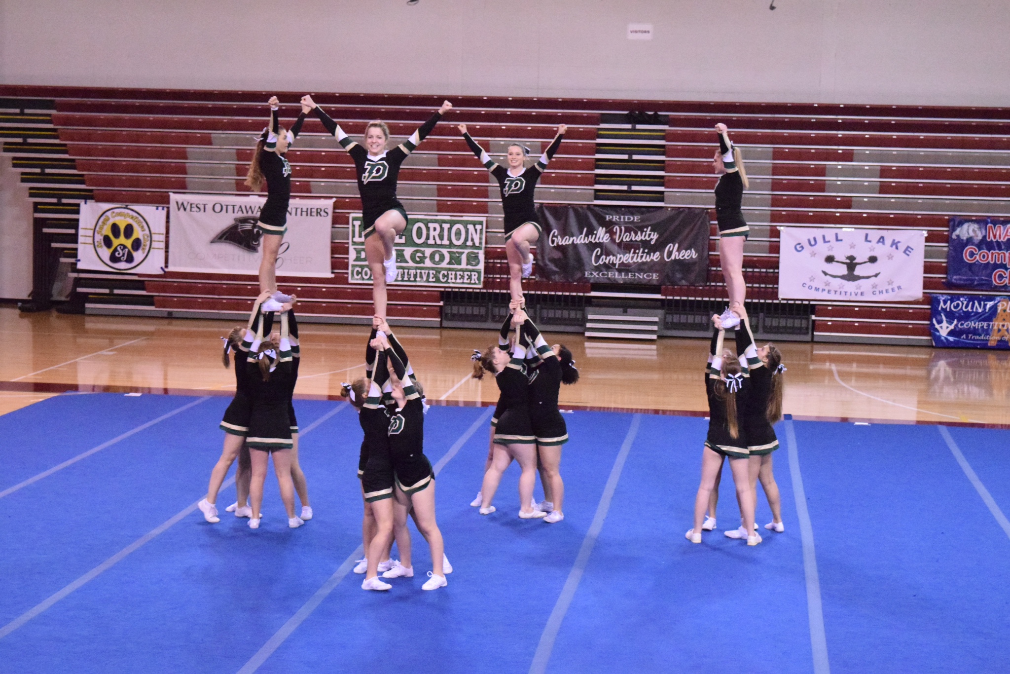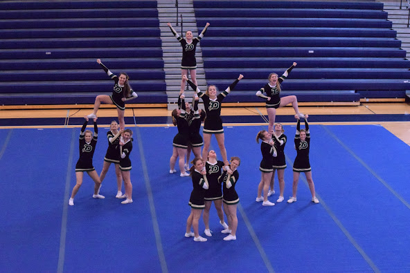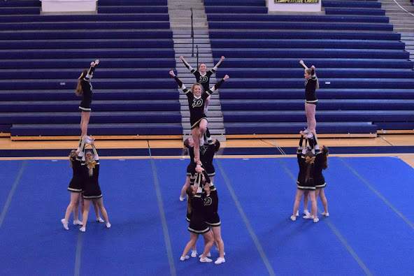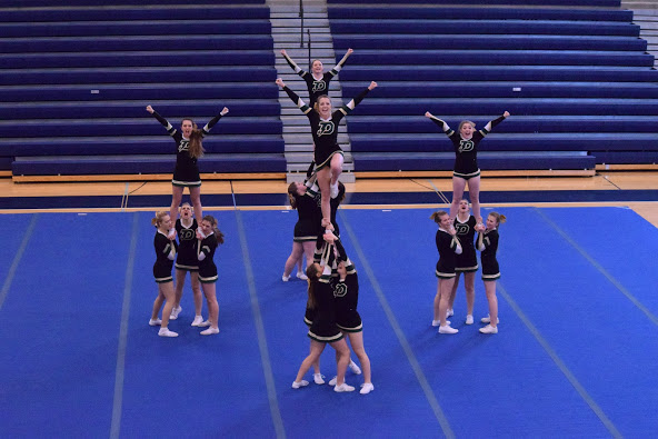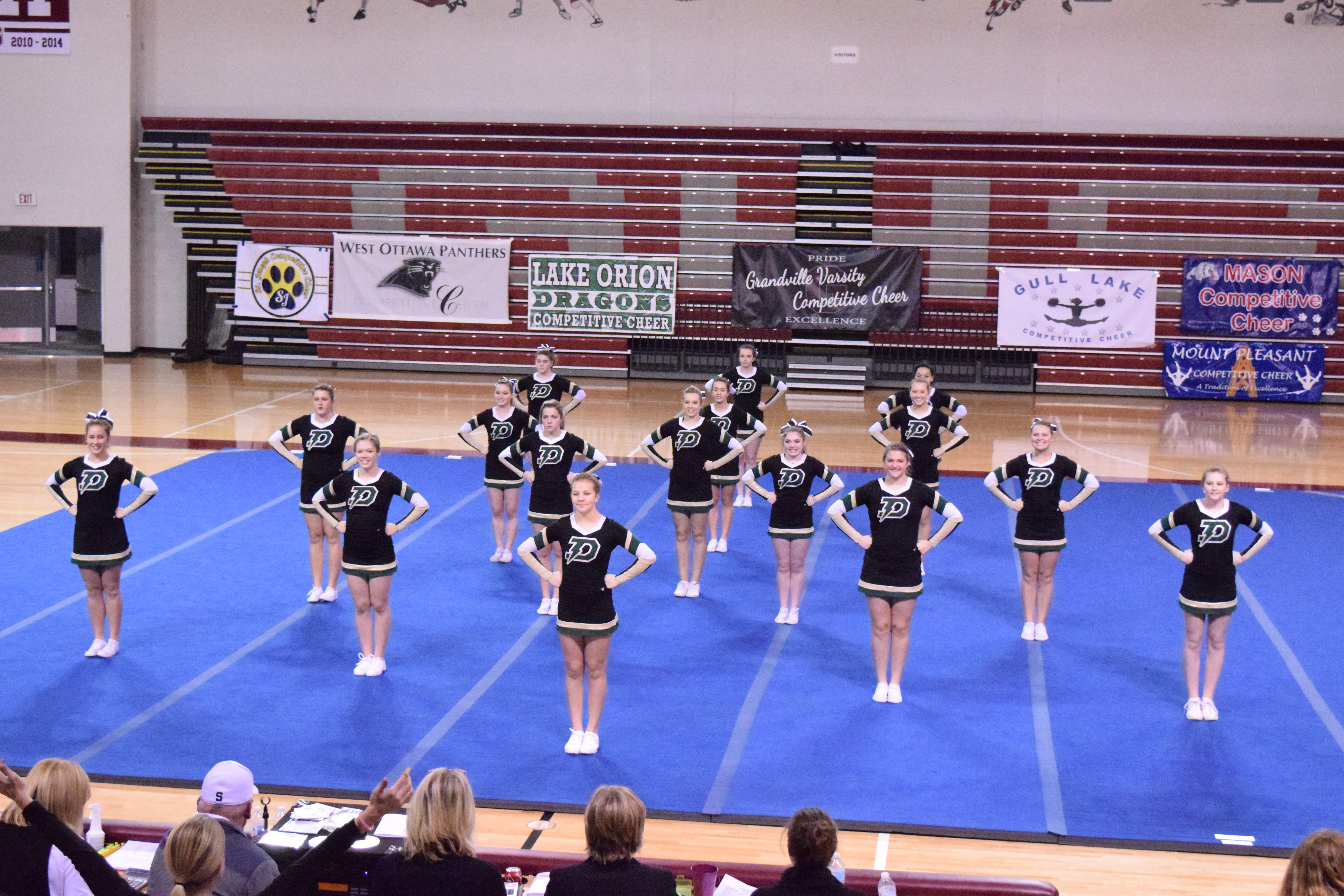 After coming in third place at District Finals on Feb. 20 at St. Johns High School, the DHS varsity cheer team focused their energy toward placing in the top four at Regionals to go onto States. The team fell short of the State competition but ended up placing eighth in the region on Feb. 27 at Muskegon Mona Shores.