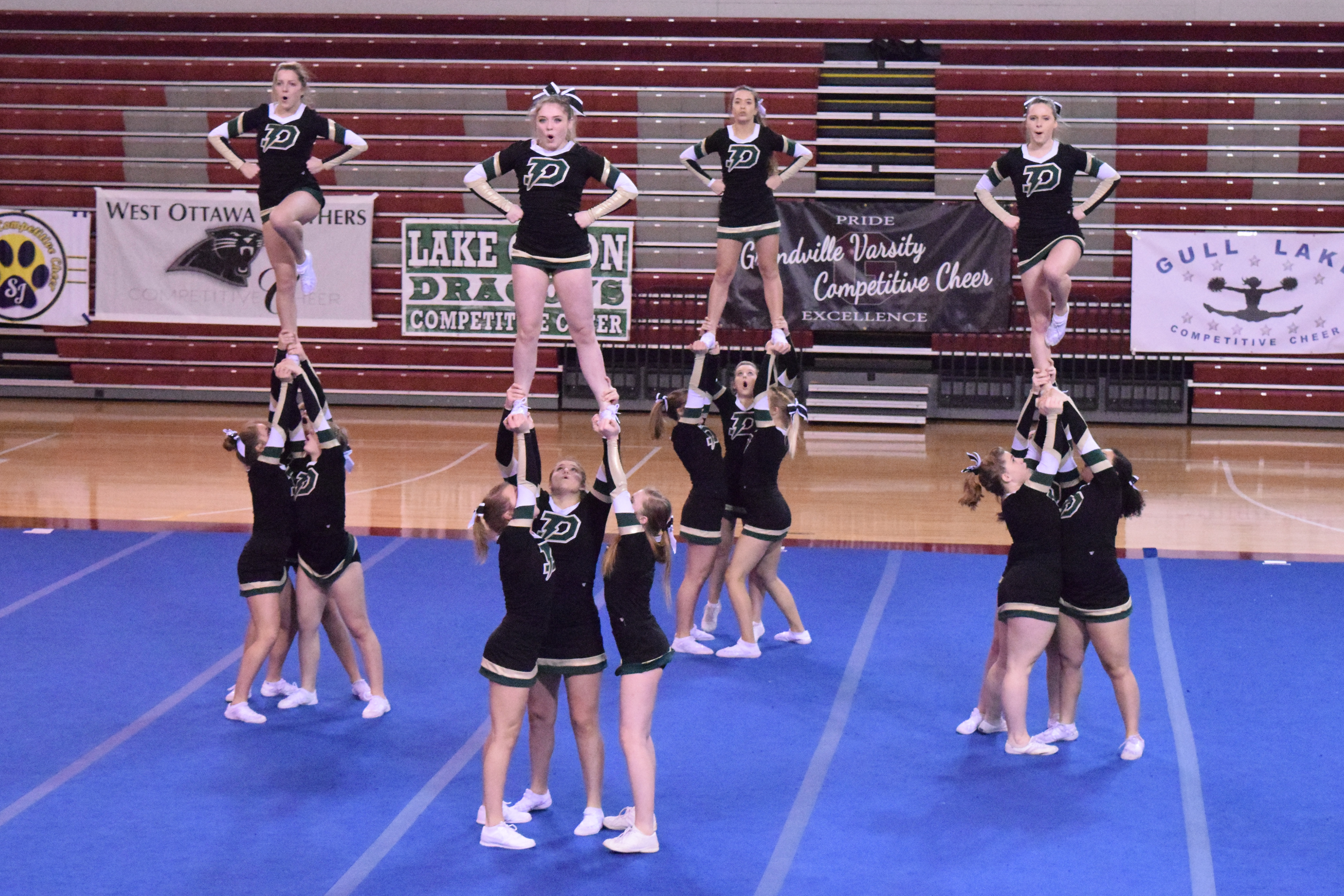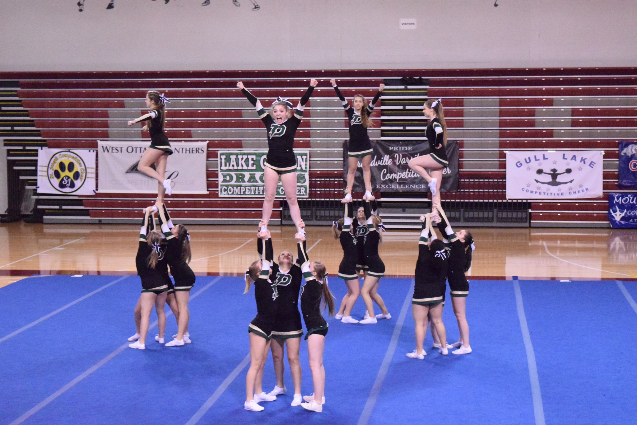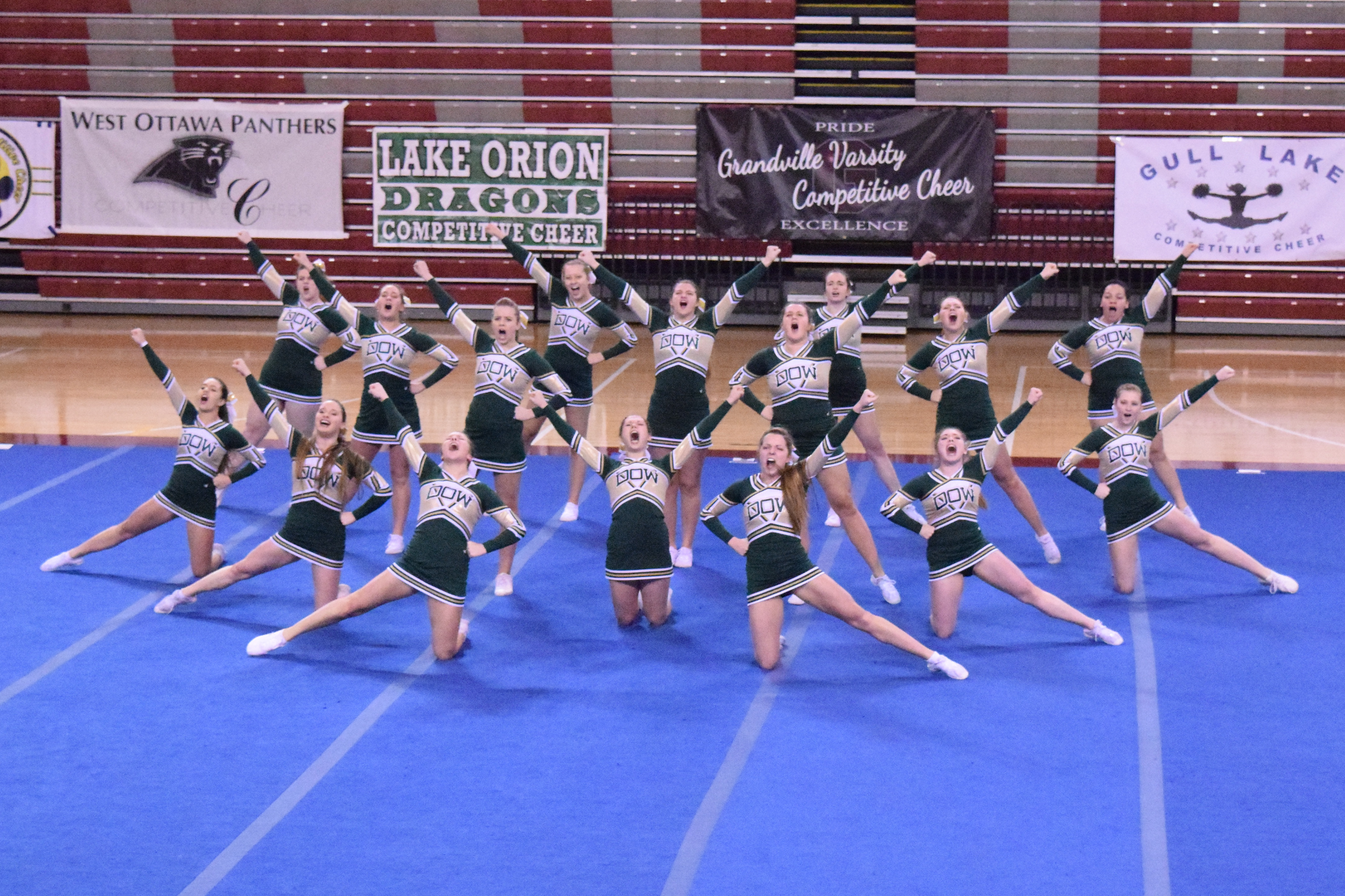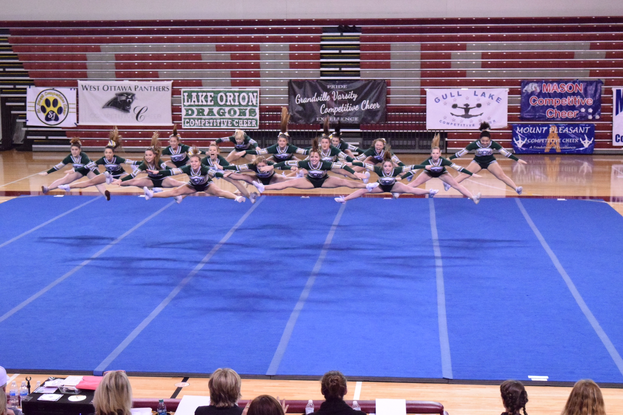 After coming in third place at District Finals on Feb. 20 at St. Johns High School, the DHS varsity cheer team focused their energy toward placing in the top four at Regionals to go onto States. The team fell short of the State competition but ended up placing eighth in the region on Feb. 27 at Muskegon Mona Shores.