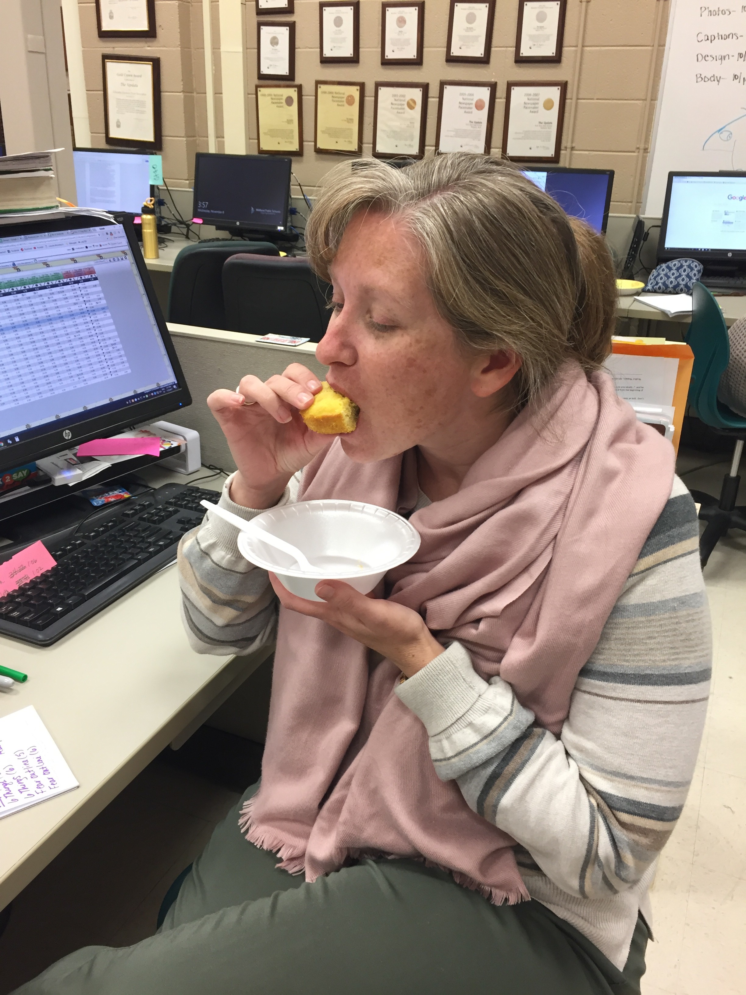 !["I would say that your cornbread looked amazing," said adviser, Cammie Hall. "It [cornbread] had a nice yellow color, it was thick which is what I love about cornbread." Hall takes the first bite of cornbread and approves it for a Thanksgiving meal.](https://update.midlandps.org/wp-content/uploads/2017/11/cammie-eating-cornbread-e1510258103192-225x300.jpg)
